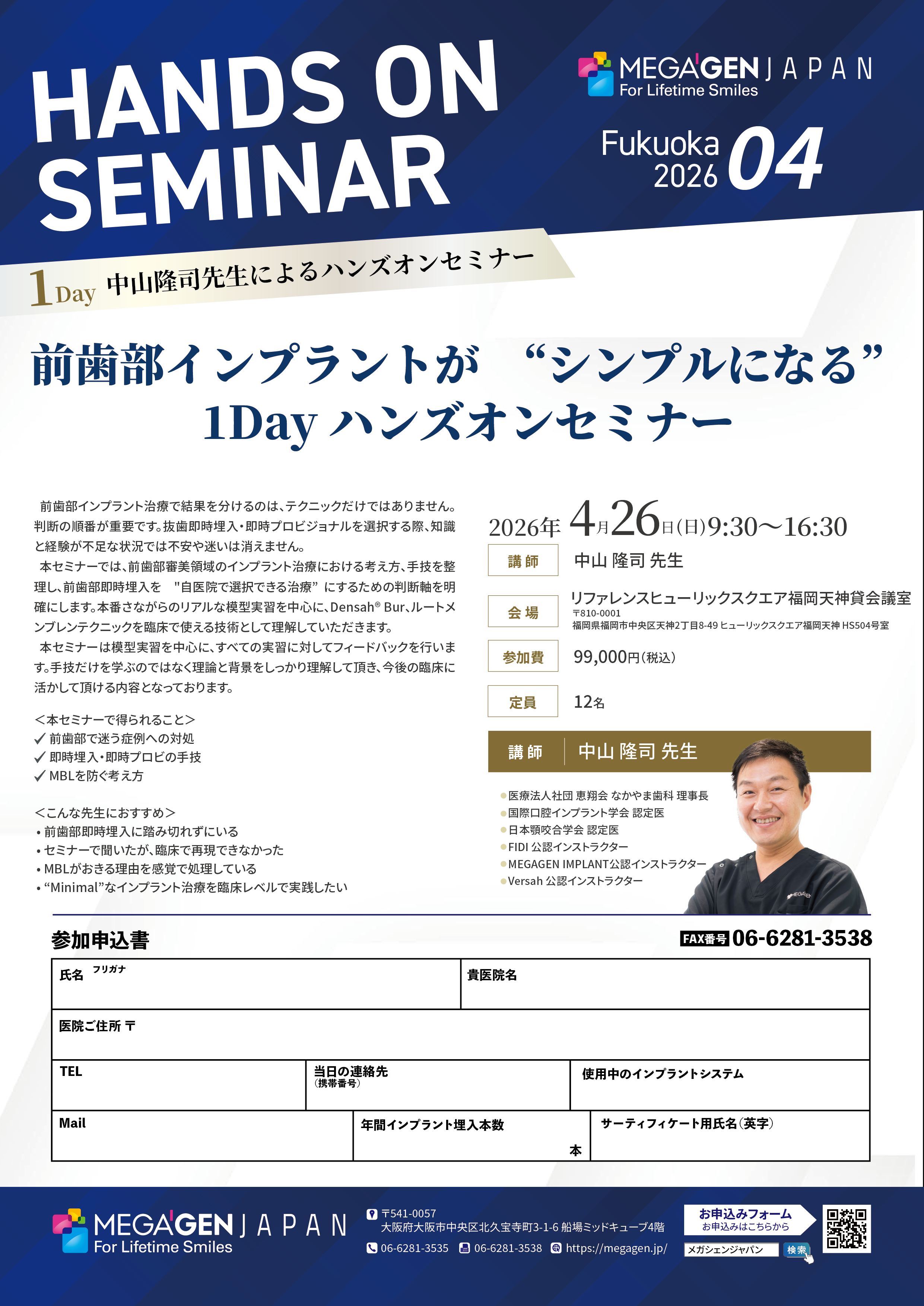 - 【ハンズオンセミナー開催のお知らせ】中山隆司先生による福岡ハンズオンセミナーを開催いたします。詳細はクリックでご確認ください。