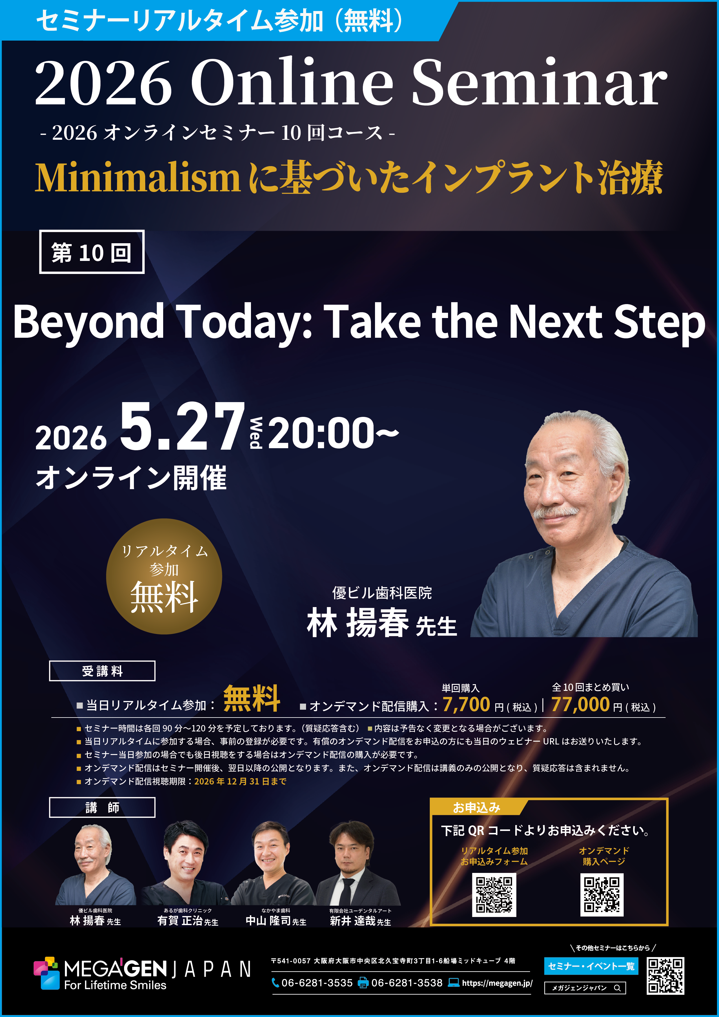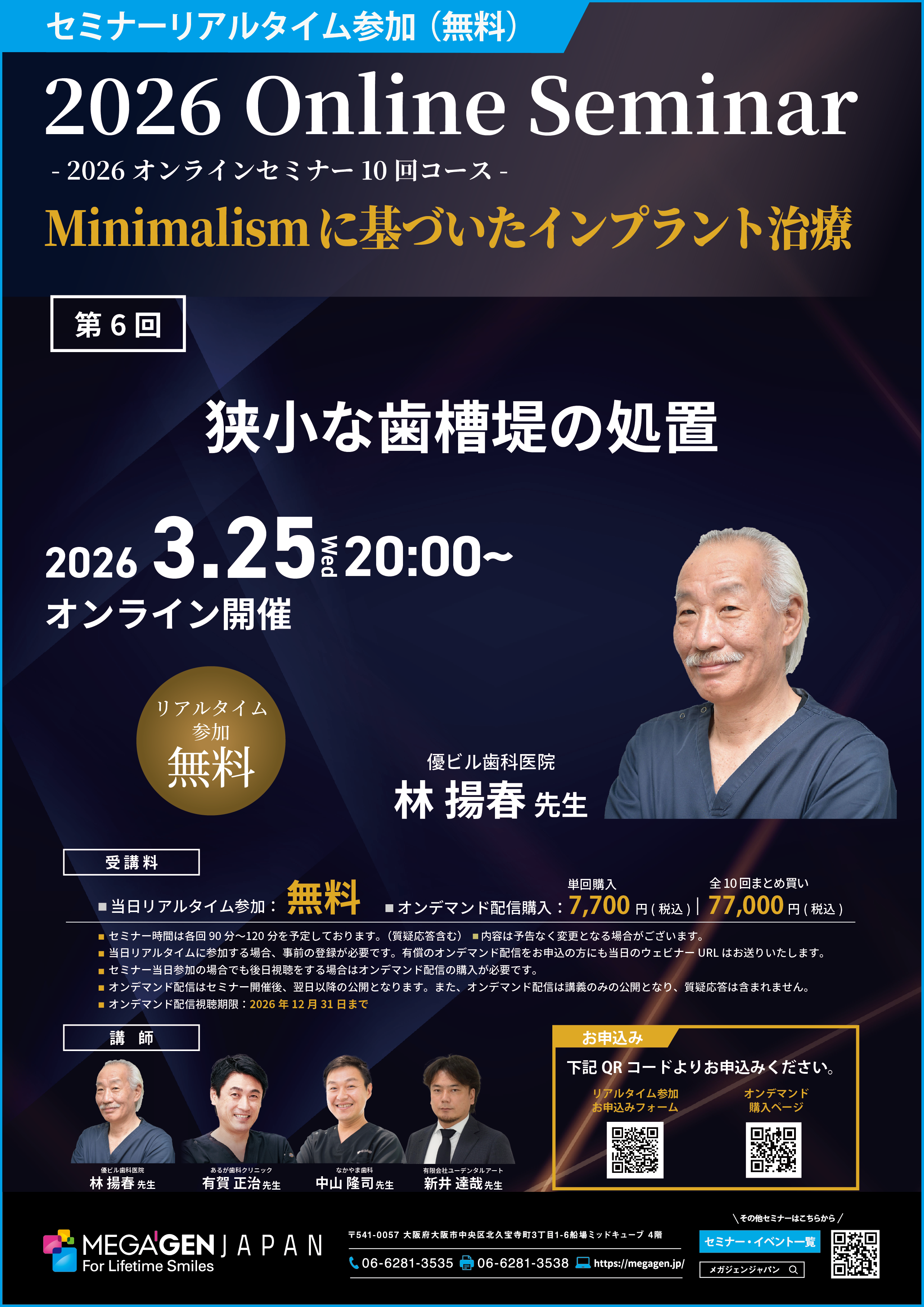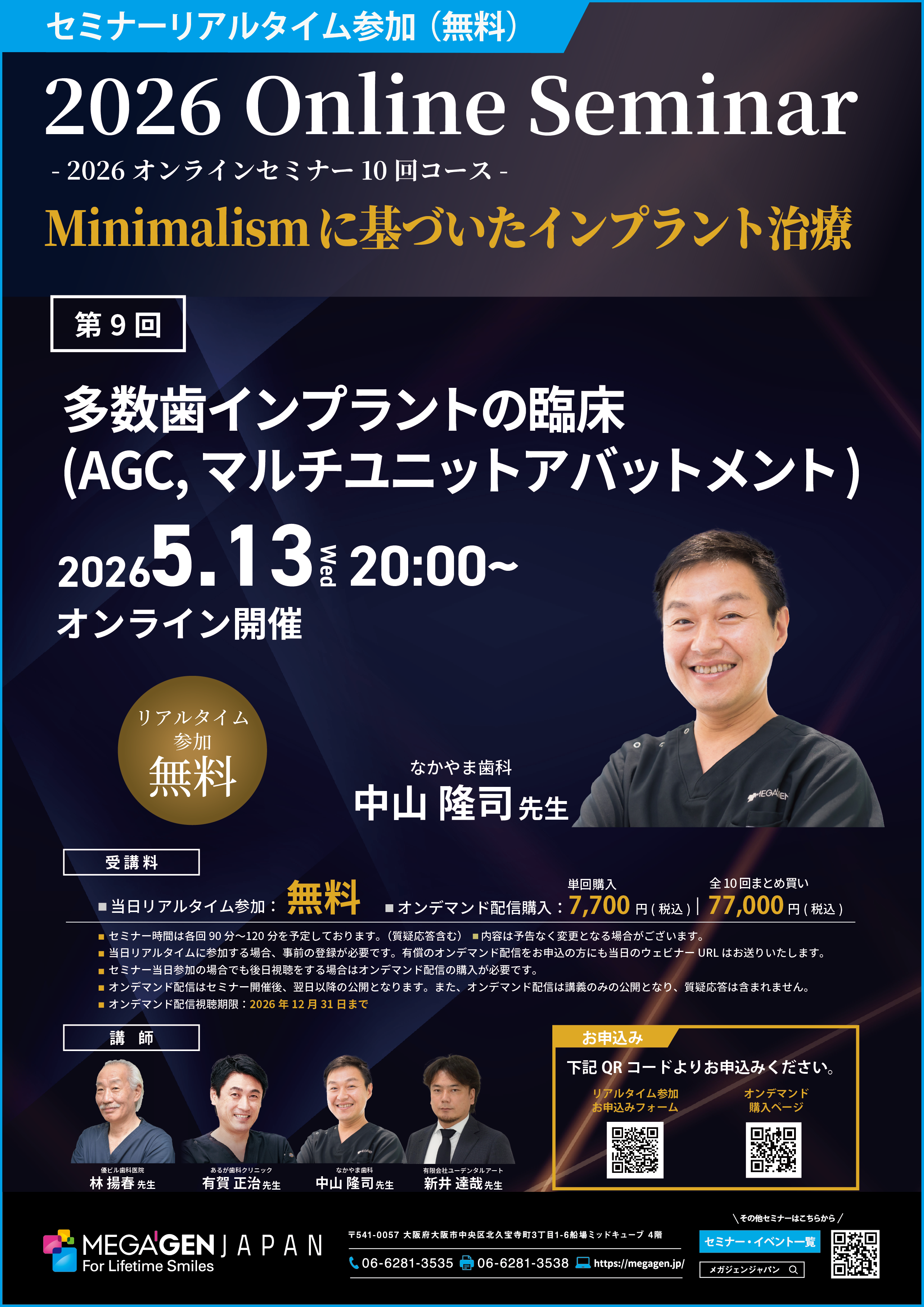 - 【リアルタイム視聴】2026オンラインセミナー10回コース_第9回「多数歯インプラントの臨床(AGC, マルチユニットアバットメント)」