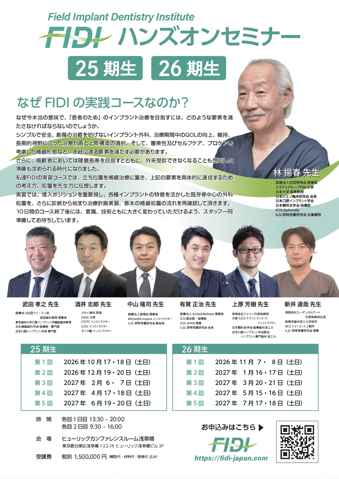 ※満員御礼 【東京Advance】有賀正治先生によるハンズオンセミナー 前歯部と臼歯部のインプラント治療ガイド 審美と機能を追求する実践的アプローチ