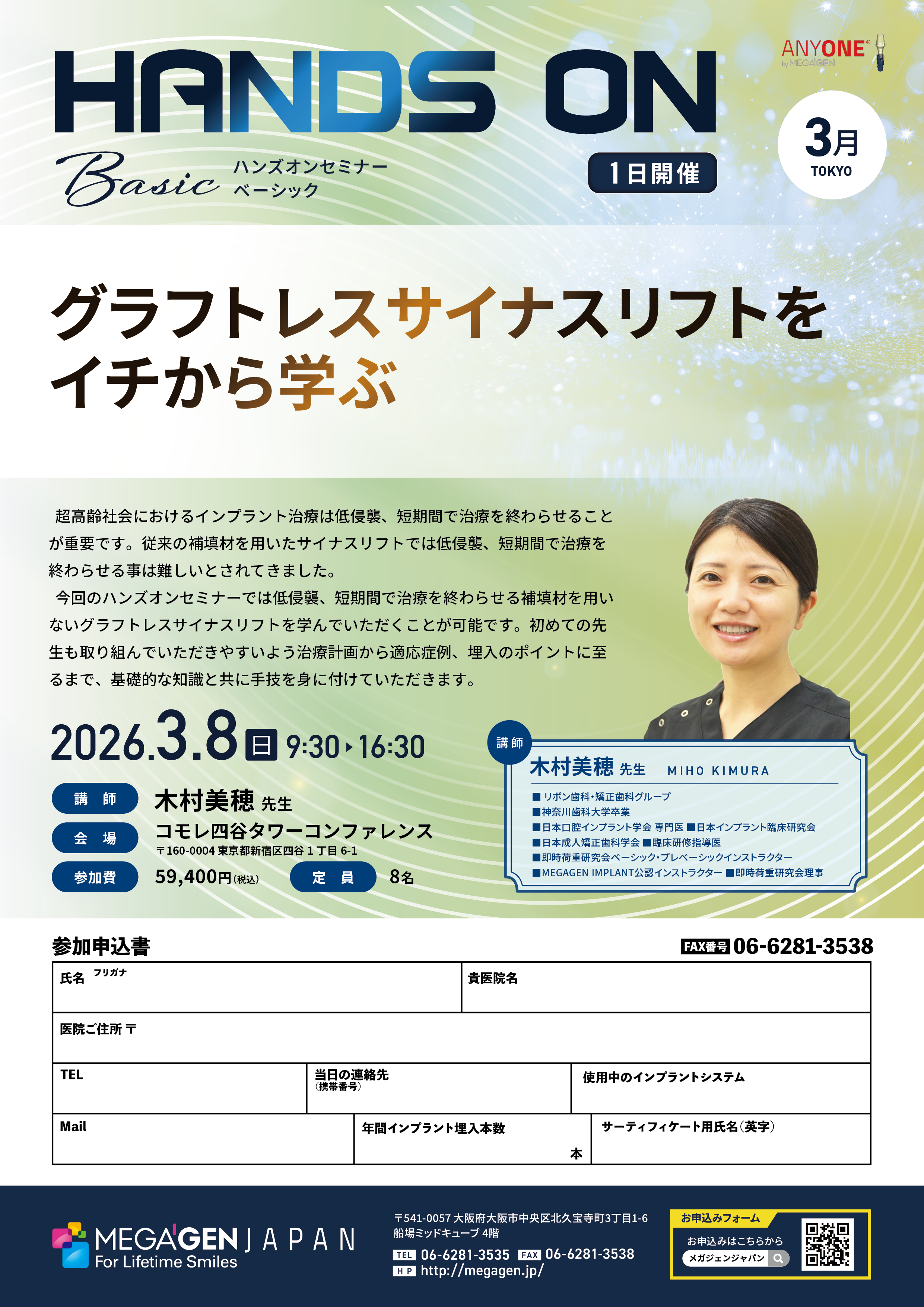 ※満員御礼 【東京Basic】木村美穂先生による1Dayハンズオンセミナー 初心者のためのやさしい抜歯即時埋入